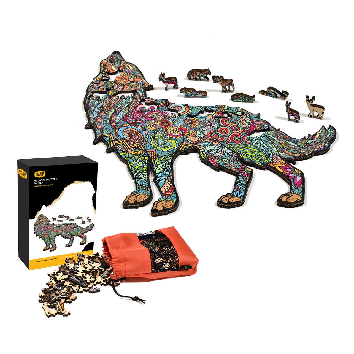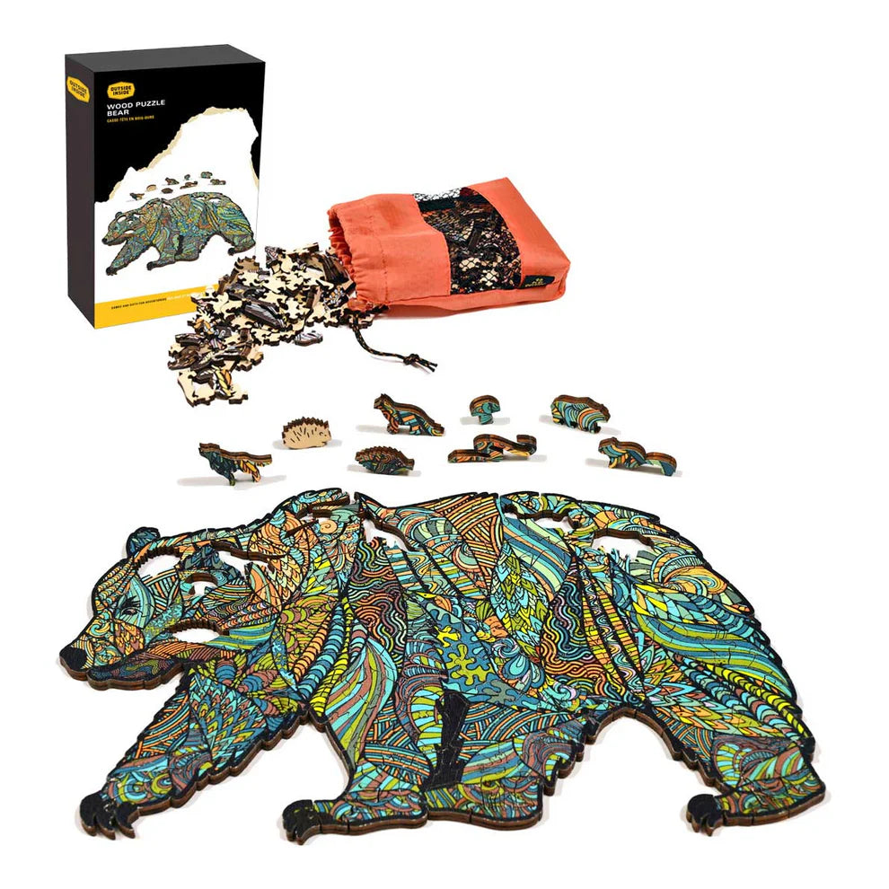 Each puzzle includes approximately 188 puzzle pieces, many shaped like wildlife and outdoor icons. Puzzles include a storage bag and guide poster and are packed in a color display box.
