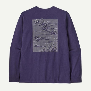 Strataspire is based on a retro graphic from the '90s. We screen-printed the artwork on our Men's Long-Sleeved Strataspire Responsibili-Tee, which is made with recycled fabrics. By utilizing fabric scraps and recycled bottles, this T-shirt made with 100% recycled fabric reduces our reliance on virgin raw materials. Made in a Fair Trade Certified factory. | Patagonia Men's Long-Sleeved Strataspire Responsibili-Tee in Wing Grey, XXL - Logo T-Shirts - Recycled Cotton/Recycled Polyester/Nylon