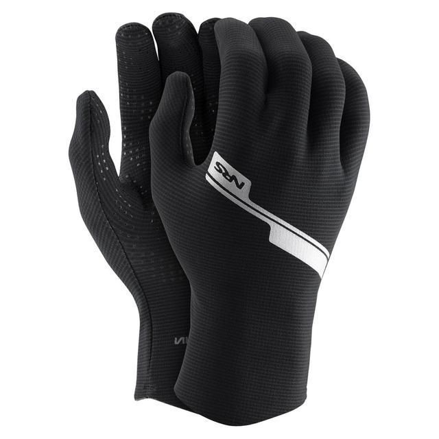 Off-season or unseasonably cool, the NRS Men's HydroSkin Gloves provide just enough insulation to cut the chill and enhance paddling grip in a simple, lightweight design. Premium nylon-spandex exterior with a DWR coating sheds water without sacrificing dexterity. 0.5 mm neoprene core for lightweight insulation. Soft, smooth and hydrophobic interior feels great against bare skin. Silicone pattern on the palm and fingers provides a better grip when wet. Features a simple, stretchy cuff for easy donning and pairing snaps to keep the gloves together.