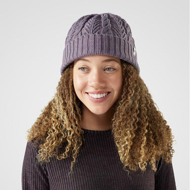 Get ready for some outdoor fun with our Cable Knit Beanie, made from a durable blend of Merino wool, nylon, and recycled polyester. The single-layer heavy rib knit construction keeps you warm and cozy, whether you're tackling the trails or just out exploring. | Smartwool Cable Knit Beanie Hat in Light Gray Heather