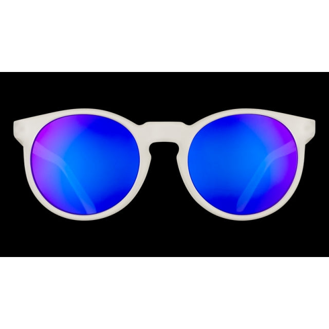 When crazy time-travel opportunities present themselves at your local convenience store, reach for these clear, translucent circle frames with purple reflective lenses. They're MOST excellent thanks to their no-slip, no-bounce performance, full UV400 protection, and polarized lenses.