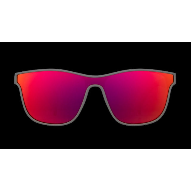 Sure, these polarized gray and red single-lens futuristic sunglasses won't slip when you sweat or bounce when you move, and the polarized lenses have UV400 protection- but they definitely won't help you pass a Voight-Kampff test, so don't ask. (Be cool, the evil robots are listening..).