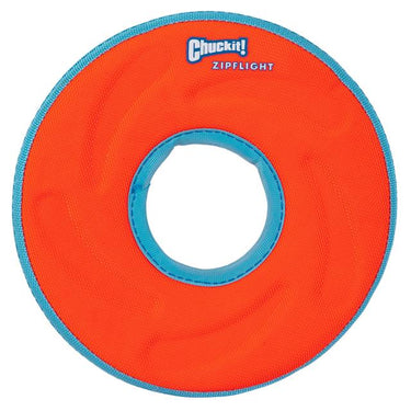 Make Fetch happen on land and in water with the Chuckit! Amphibious ZipFlight. Designed for exceptional performance and visibility, it is durable, pliable, and floats! The lightweight, aerodynamic design makes it ideal for easy catches or long-distance games of fetch that are gentle on your dog's mouth.The toy soars through the air for a fast flight. It's unsinkable and floats high in the water, making it the perfect summertime flyer. Its soft, rugged construction is easy to clean, making it a great toy for both the backyard and the water.Bright colors provide increased visibility and help prevent the toy from getting lost. The aerodynamic shape is designed for long-distance games of fetch. Ships in assorted colors.