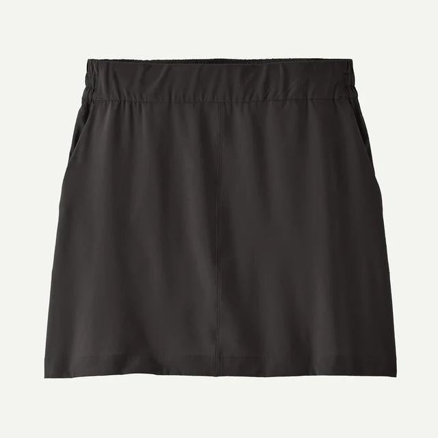 Our Terrebonne Traveler Skort is your easy-care do-it-all for many warm days ahead, made of breathable, quick-drying 90% recycled polyester with a touch of spandex for stretch. This athletic skort is a cool-wearing staple for life on the go and features an elastic high-rise waistband, three utility pockets and an above-the-knee straight hem. | Patagonia Women's Terrebonne Traveler Skort in Black, Small - Polyester/Spandex