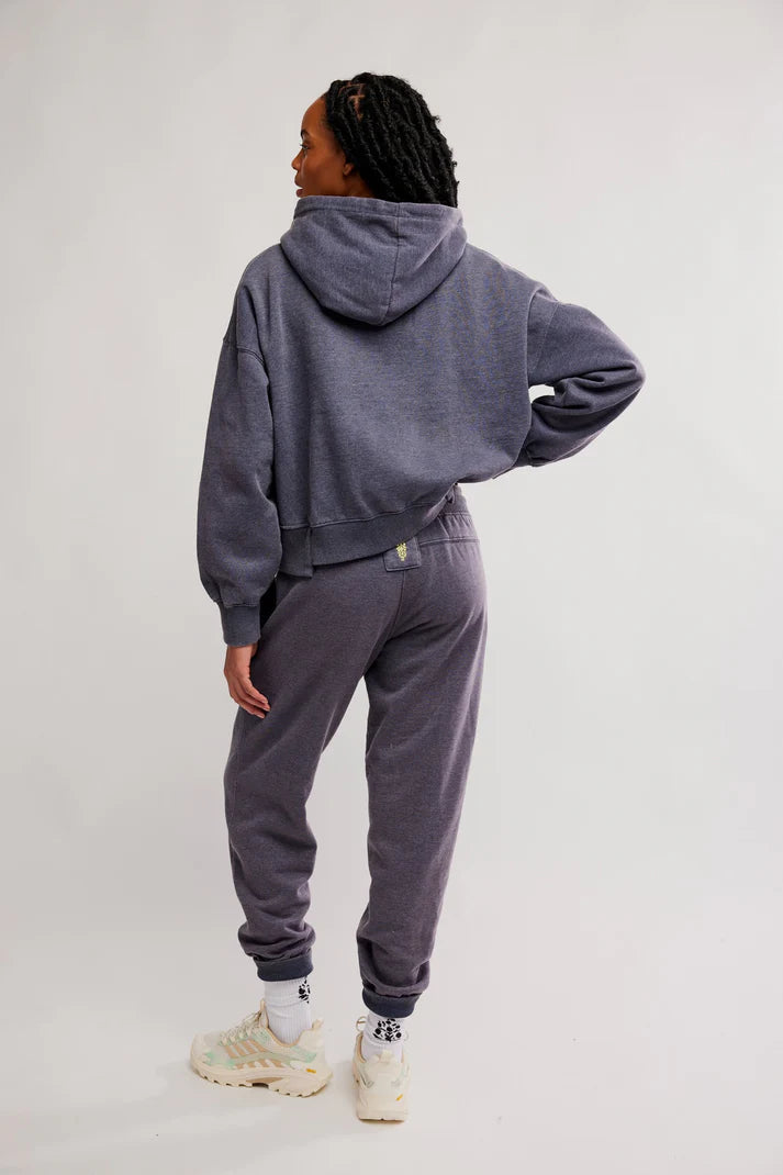 Our essential set, now in a sand washed hue. Featuring a slightly cropped, relaxed-fit hoodie top with coordinating high-rise tapered sweatpants for the perfect done-in-one look no matter the activity.